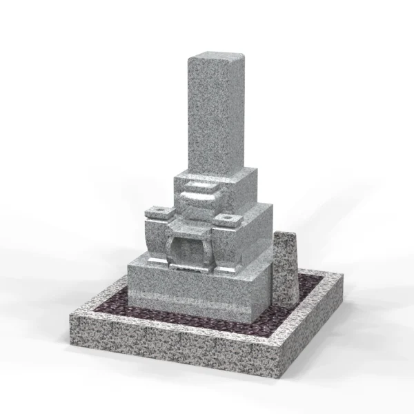 香箱・額縁加工を施した棹石や三面水垂加工の拝石など、細部まで丁寧に仕上げた本格仕様。外柵一体型の設計により、安定感と高級感を兼ね備えています。