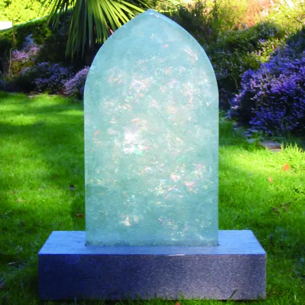 柔らかなフォルムとアートガラスの透過光が調和し、洋風・和風いずれの墓所にも自然に溶け込みます。