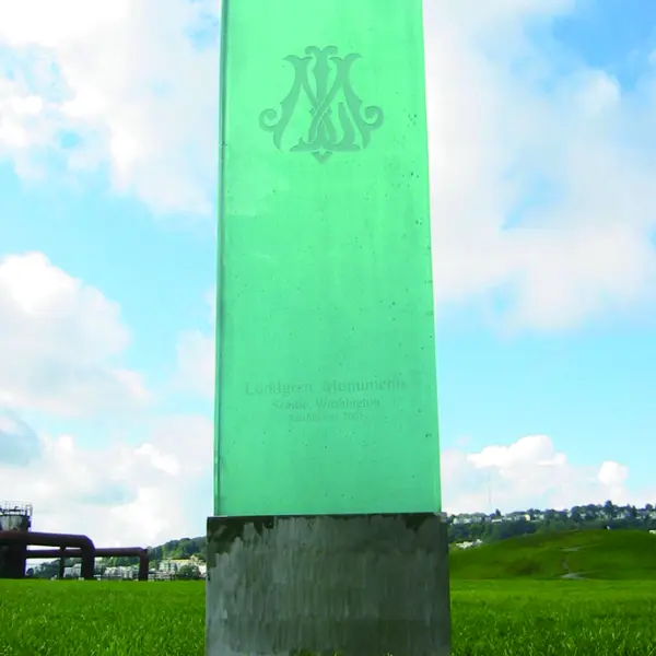 SE505は、縦方向のラインを強調したシンプルで端正なフォルムが特徴のアートガラスモニュメントです。