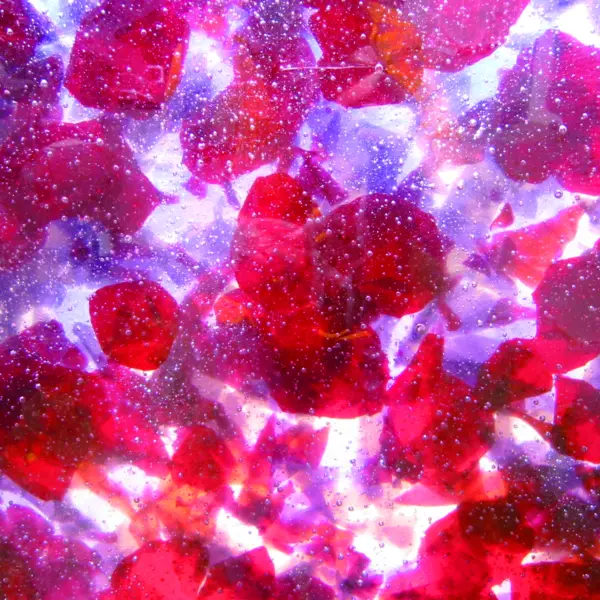 「花の光Ⅱ」は、赤や紫を基調としたアートガラスが特徴で、生命の力強さや、あたたかな想いを感じさせる一基です。