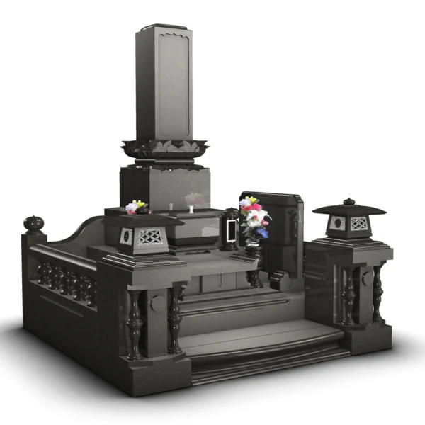 左右対称の外柵と防風灯付きの設計により、見た目の美しさだけでなく、お参りのしやすさや耐久性にも配慮。ご家族の想いを末永く守る、安心感のあるスタンダードモデルです。